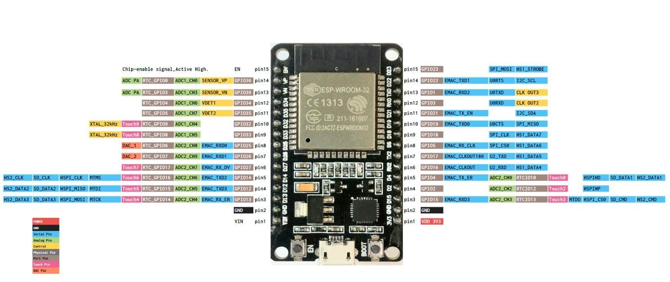 - Based on ESP32 WROOM-32 chip with dual-core processor (240 MHz)