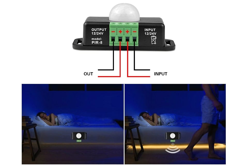 PIR-8 12/24VDC 8A 5-8M Infrared PIR Motion Sensor Switch for LED Light Lamp