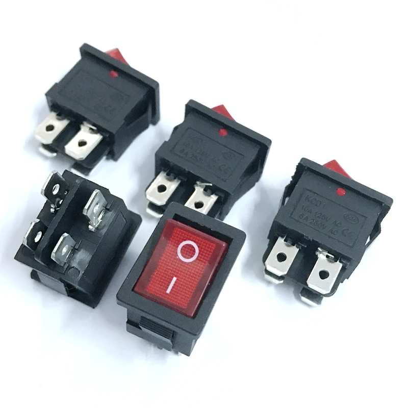 Rocker Switch KCD1-104 4 Pin 6A 250V 10A125VRed Button With Light On – Off